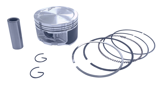 Composto por pistão, anéis, pino e travas, o conjunto é uma alternativa mais econômica quando comparada ao kit de motor completo que, além desses itens, conta com a camisa de cilindro.